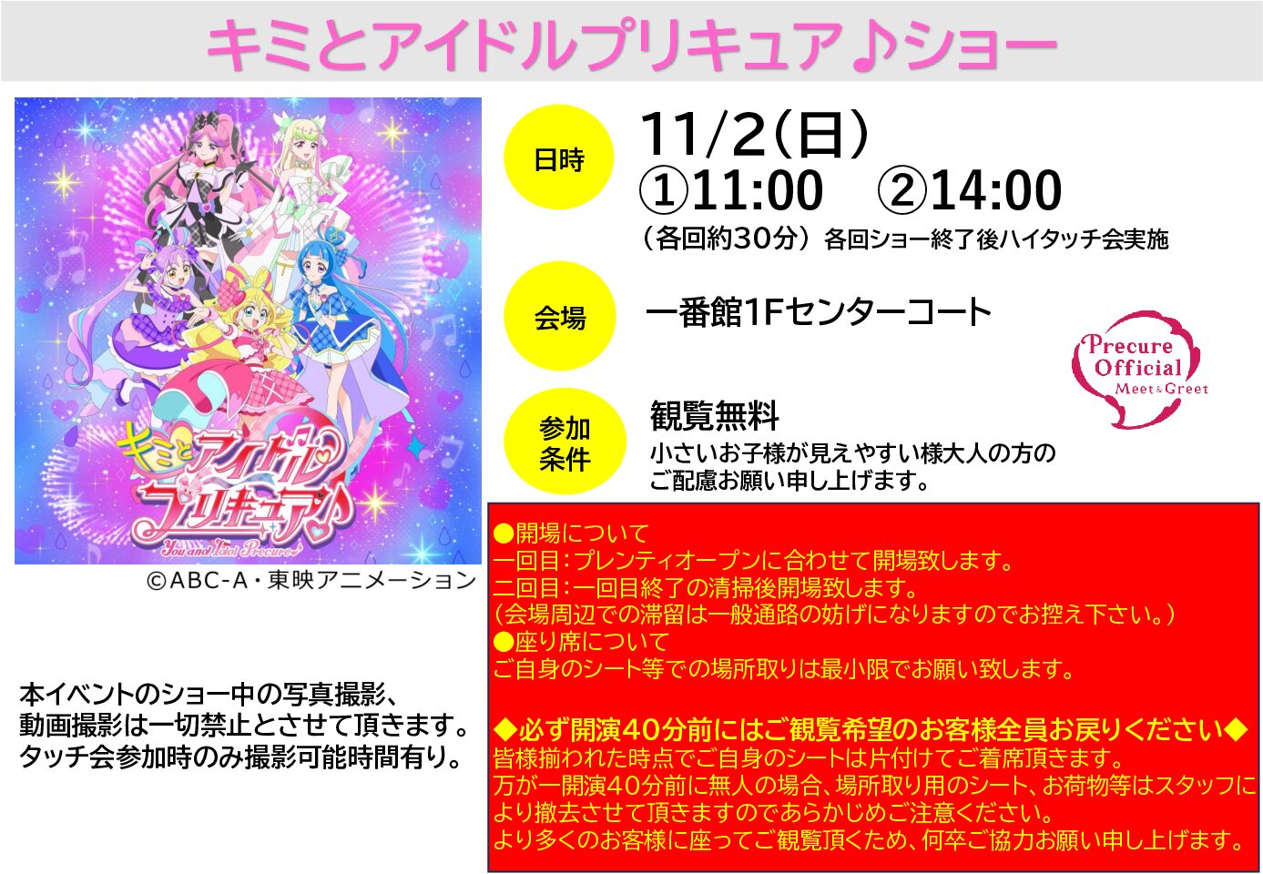 タッチ会参加時のみ撮影可能時間あり。小さいお子様が見えやすいよう、大人の方のご配慮をお願い申し上げます。