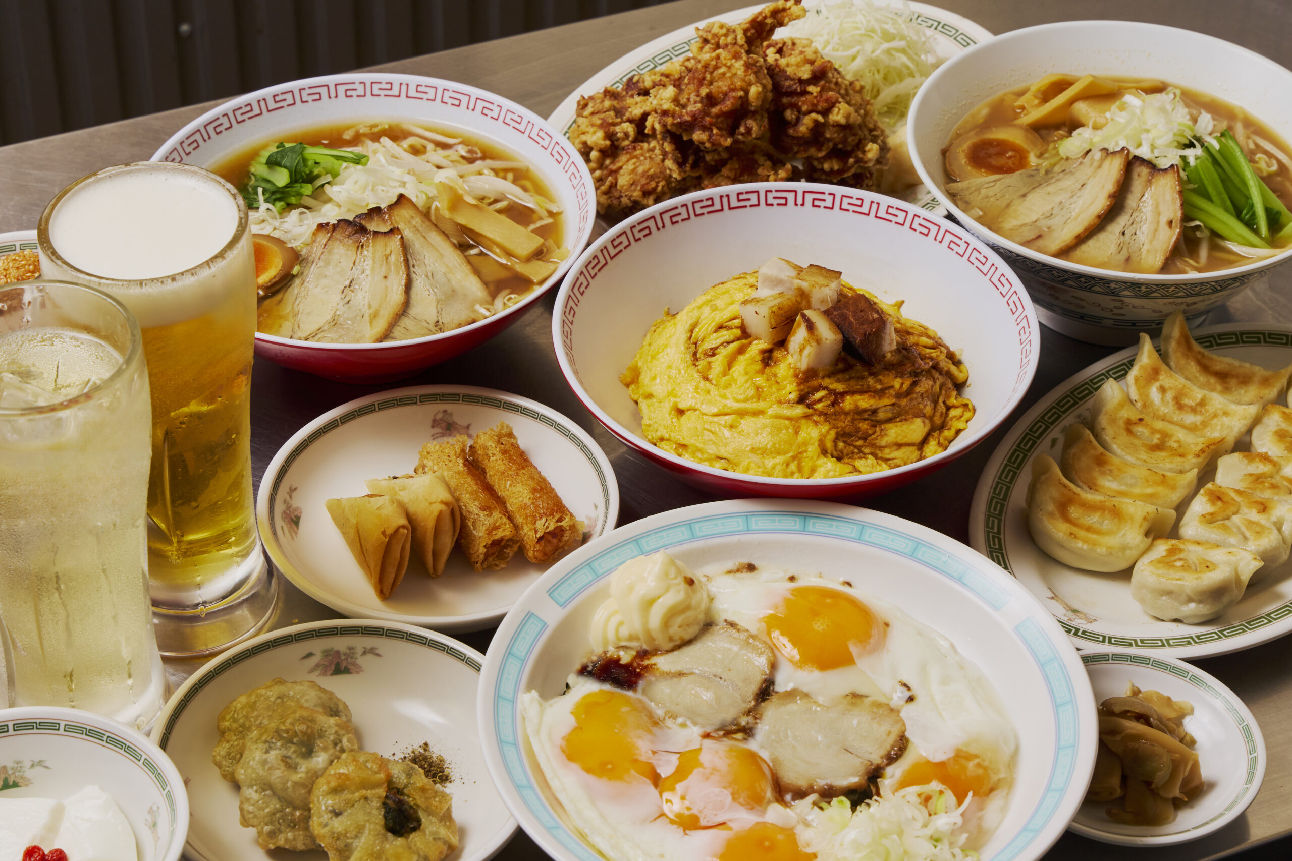 自家製餃子・昔ながらの中華そばや、チャーシューエッグ・びっくり唐揚げなど