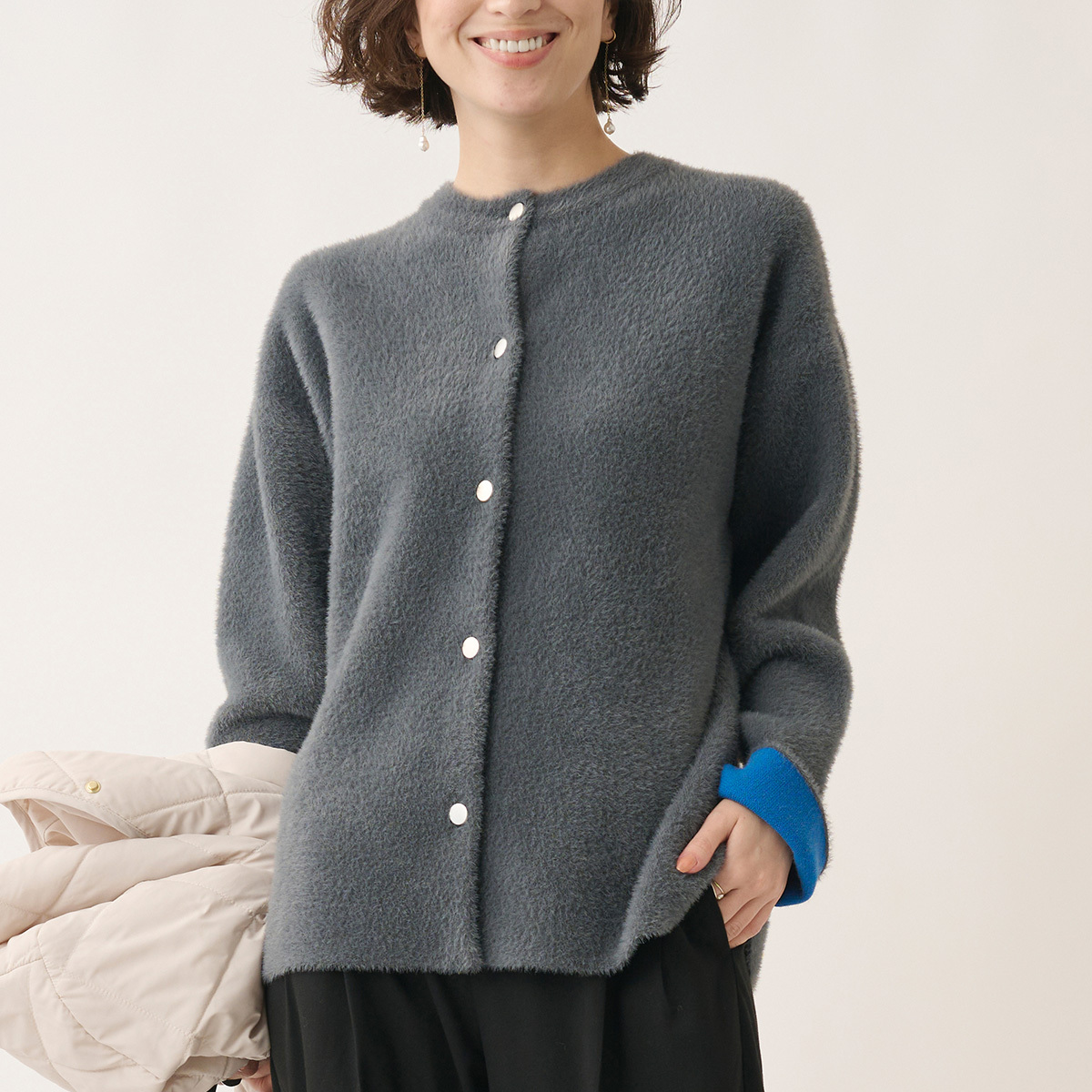 シャギー素材でシーズンムードが漂うニットカーディガンです。