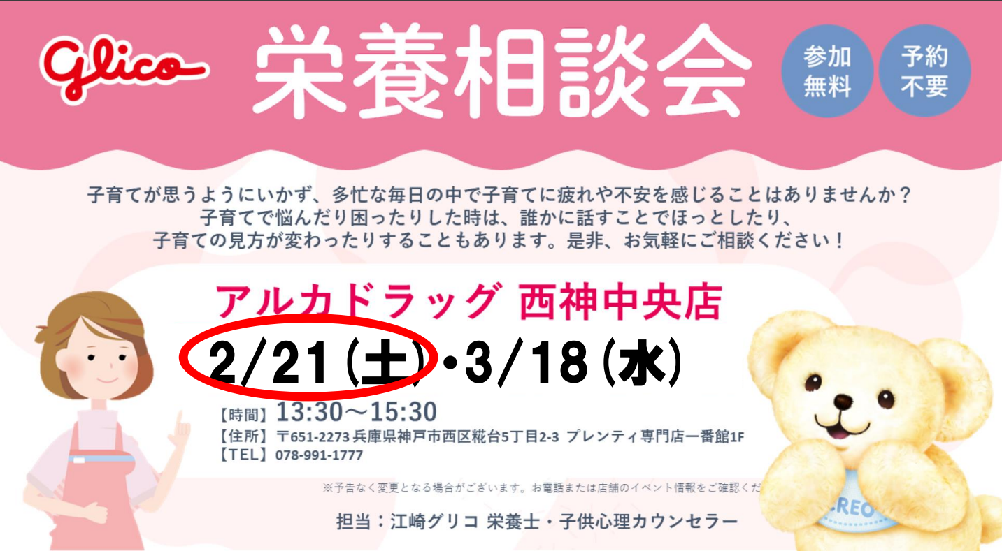 栄養相談会をアルカドラッグ西神中央店にて開催いたします。
