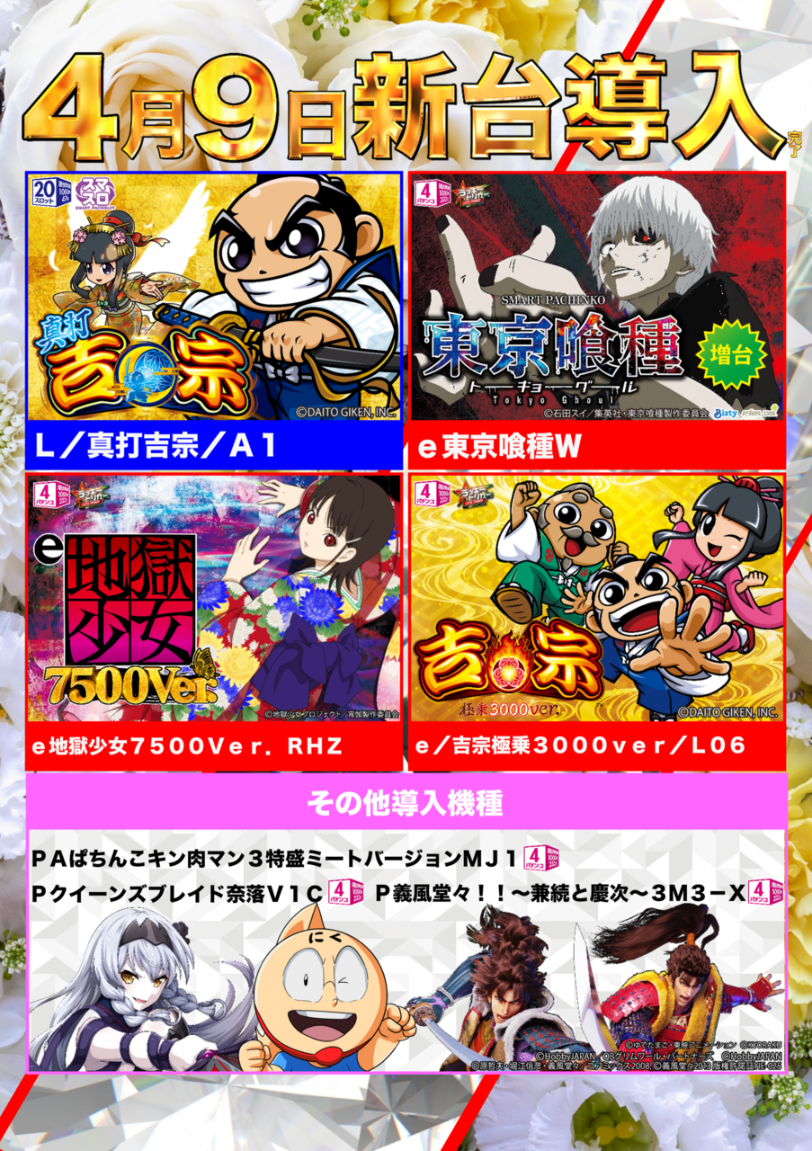 4月9日(木)新台入替完了!!